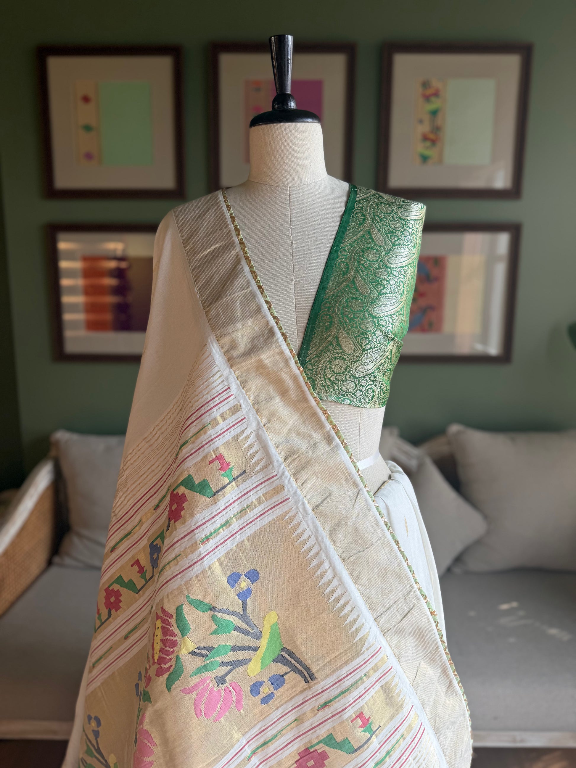 All our textiles (sarees and dupattas) are woven by our team of master weavers who are based in Yeola, a small town in Maharashtra.