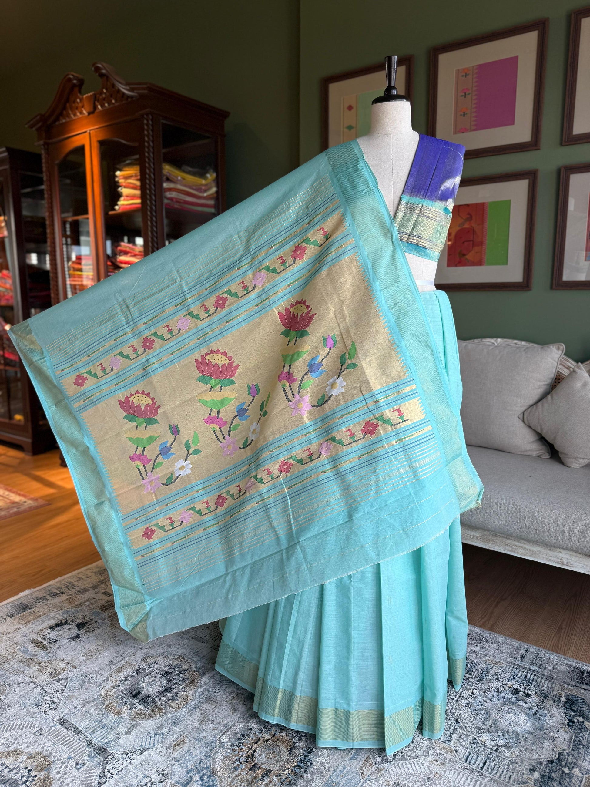 Experience the allure of timeless tradition with our handwoven light weight Cotton Paithani saree, meticulously crafted in the heritage town of Yeola. Perfect for those who appreciate artful elegance and bespoke luxury.